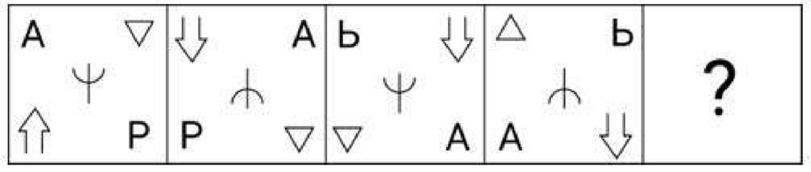 A new symbol must appear in the Top-Left. Looking at the correct option, an upside-down 'A' ($\forall$) acts as this new symbol.