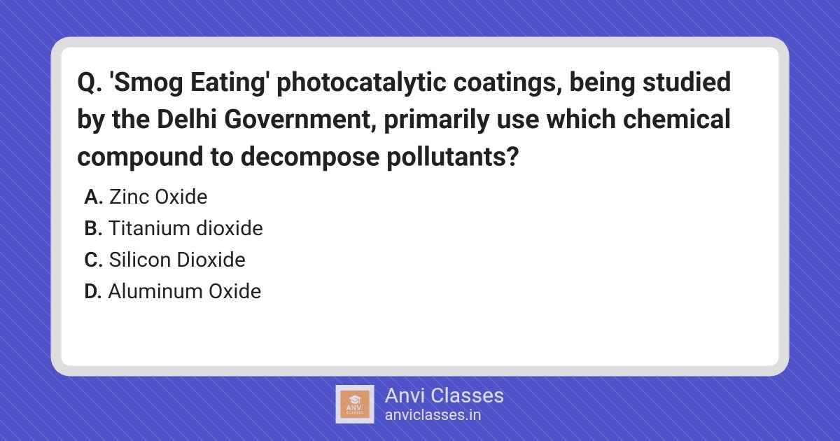‘Smog Eating’ photocatalytic coatings, being studied by the Delhi Government, primarily use which chemical compound to decompose pollutants?