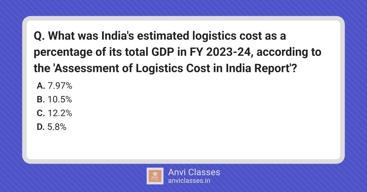 What was India’s estimated logistics cost as a percentage of its total GDP in FY 2023-24, according to the ‘Assessment of Logistics Cost in India Report’?