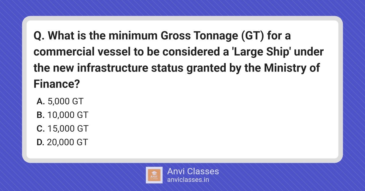 What is the minimum Gross Tonnage (GT) for a commercial vessel to be considered a ‘Large Ship’ under the new infrastructure status granted by the Ministry of Finance?
