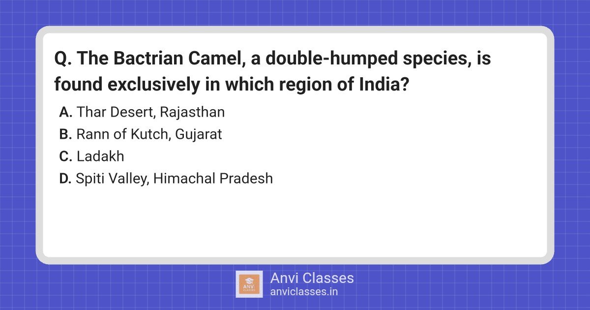 The Bactrian Camel, a double-humped species, is found exclusively in which region of India?