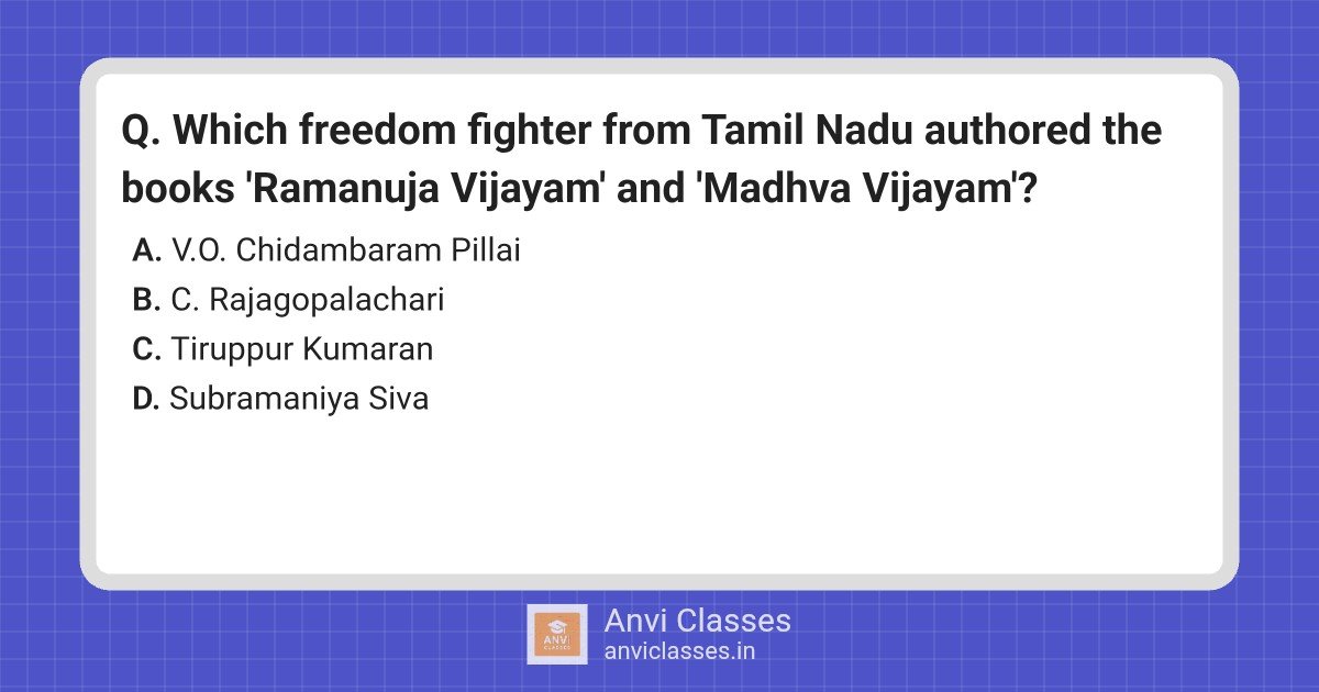 Which freedom fighter from Tamil Nadu authored the books ‘Ramanuja Vijayam’ and ‘Madhva Vijayam’?