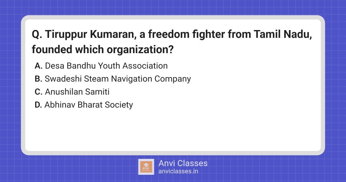 Tiruppur Kumaran, a freedom fighter from Tamil Nadu, founded which organization?
