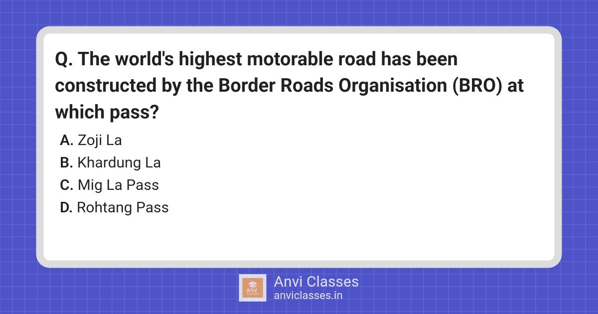 The world’s highest motorable road has been constructed by the Border Roads Organisation (BRO) at which pass?