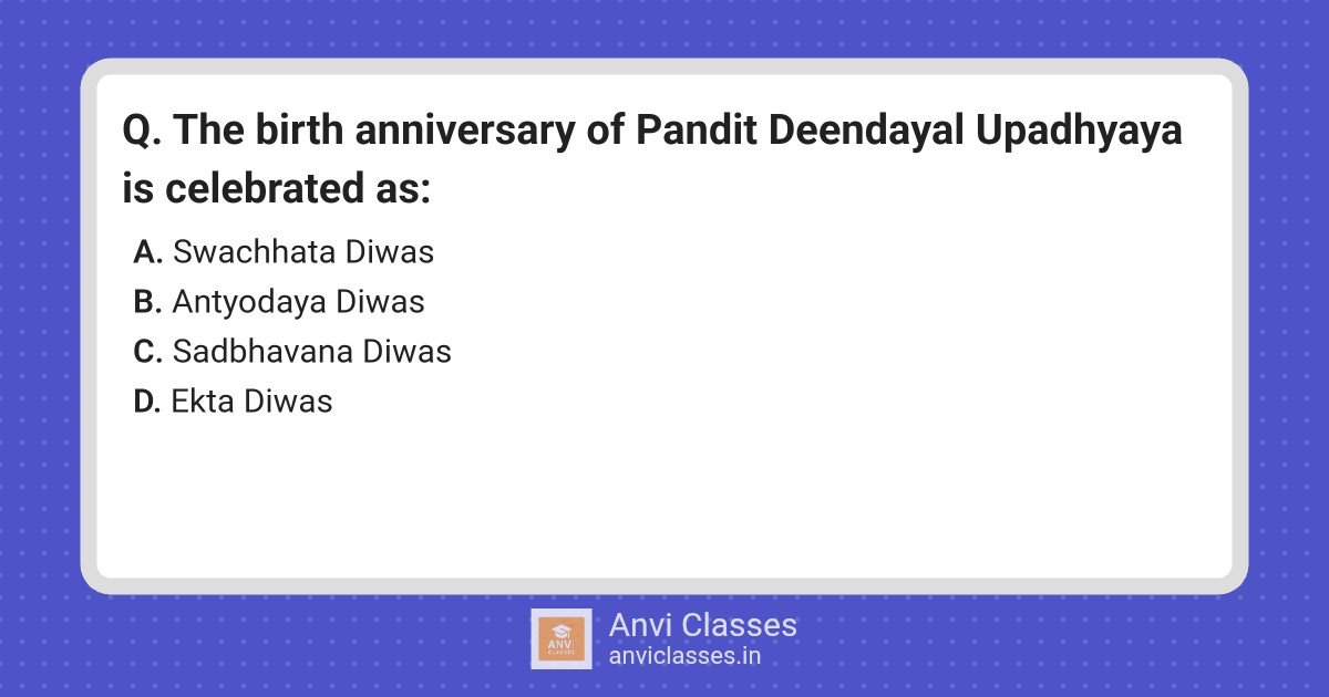 The birth anniversary of Pandit Deendayal Upadhyaya is celebrated as: