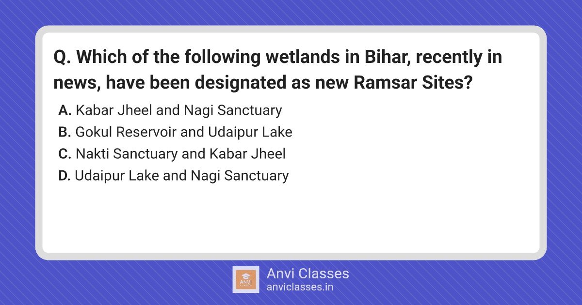 Which of the following wetlands in Bihar, recently in news, have been designated as new Ramsar Sites?