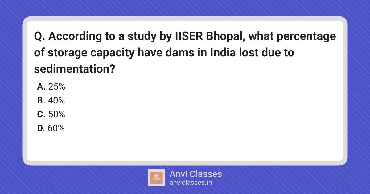 According to a study by IISER Bhopal, what percentage of storage capacity have dams in India lost due to sedimentation?