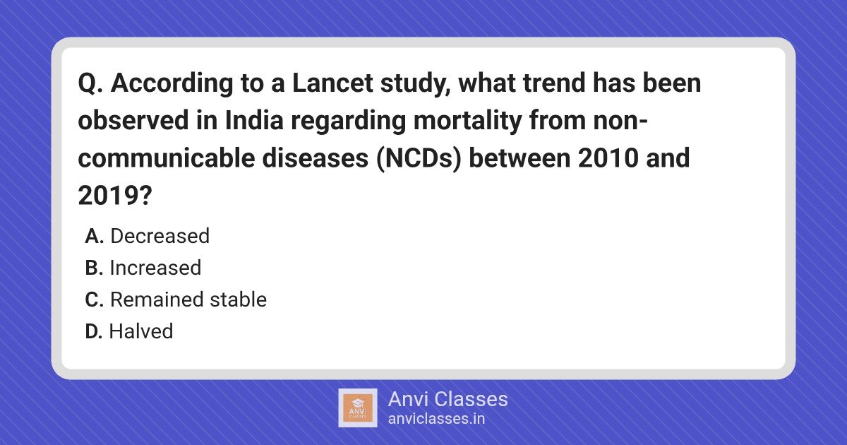According to a Lancet study, what trend has been observed in India regarding mortality from non-communicable diseases (NCDs) between 2010 and 2019?