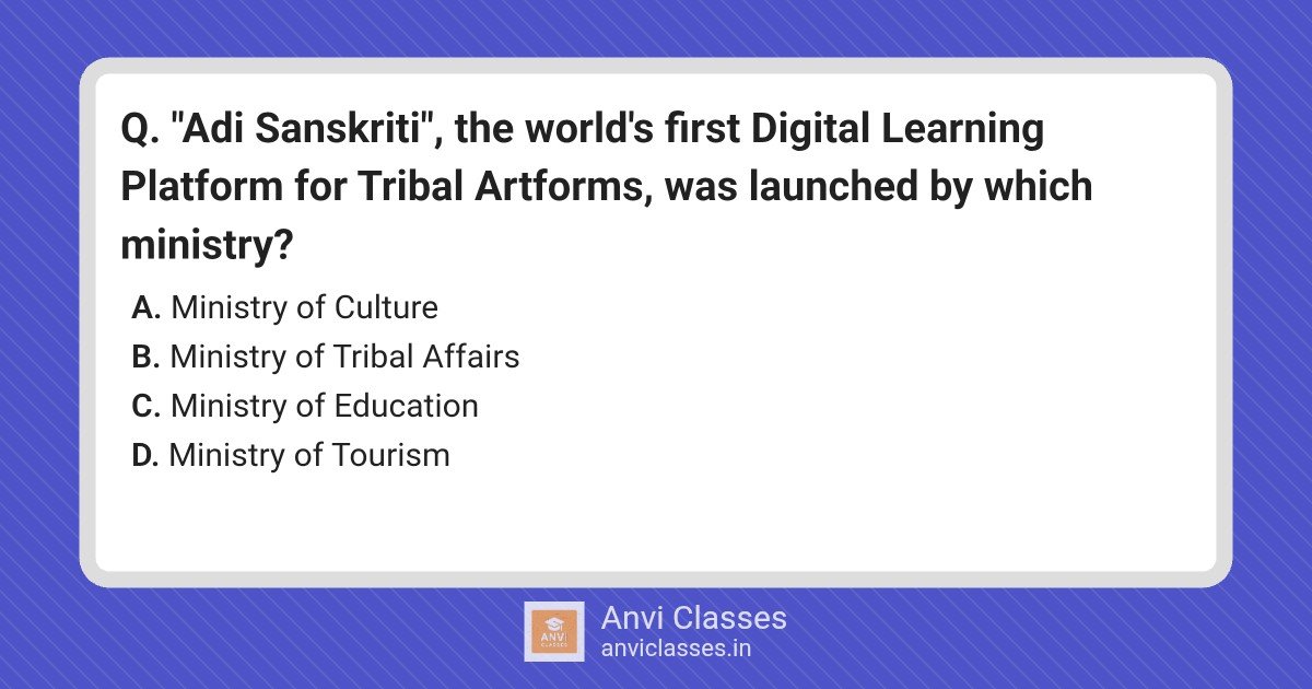 “Adi Sanskriti”, the world’s first Digital Learning Platform for Tribal Artforms, was launched by which ministry?
