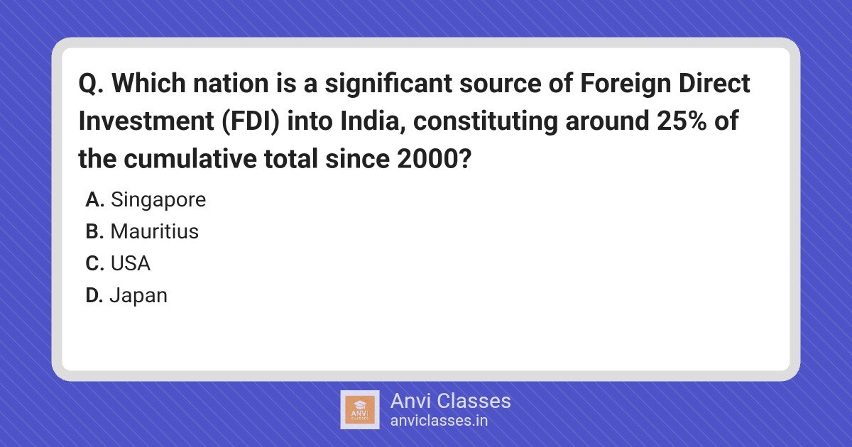 Which nation is a significant source of Foreign Direct Investment (FDI) into India, constituting around 25% of the cumulative total since 2000?