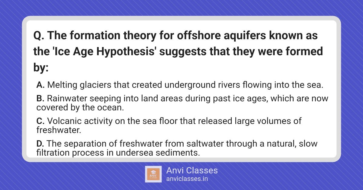 The formation theory for offshore aquifers known as the ‘Ice Age Hypothesis’ suggests that they were formed by: