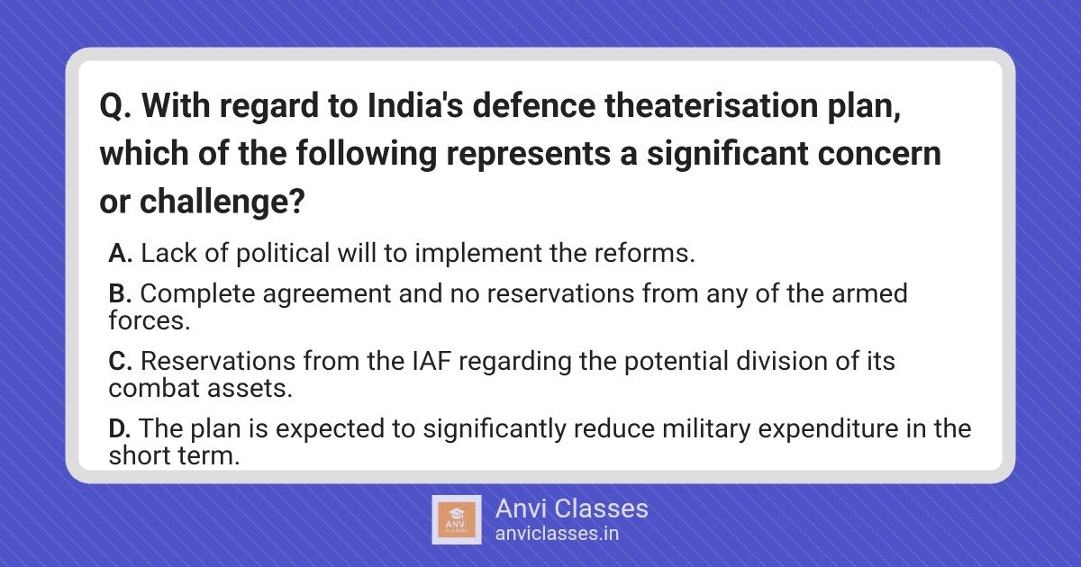 With regard to India’s defence theaterisation plan, which of the following represents a significant concern or challenge?