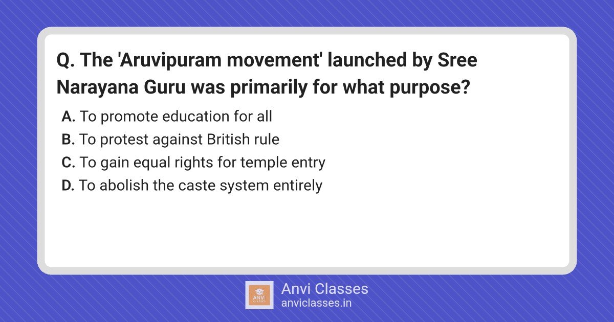 The ‘Aruvipuram movement’ launched by Sree Narayana Guru was primarily for what purpose?