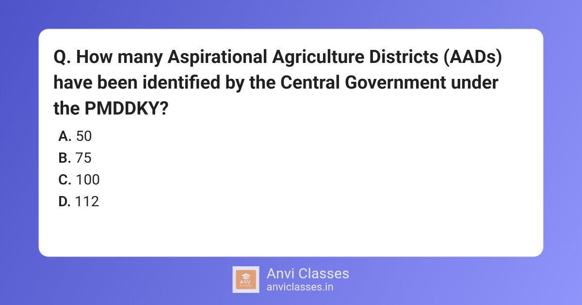 How many Aspirational Agriculture Districts (AADs) have been identified by the Central Government under the PMDDKY?