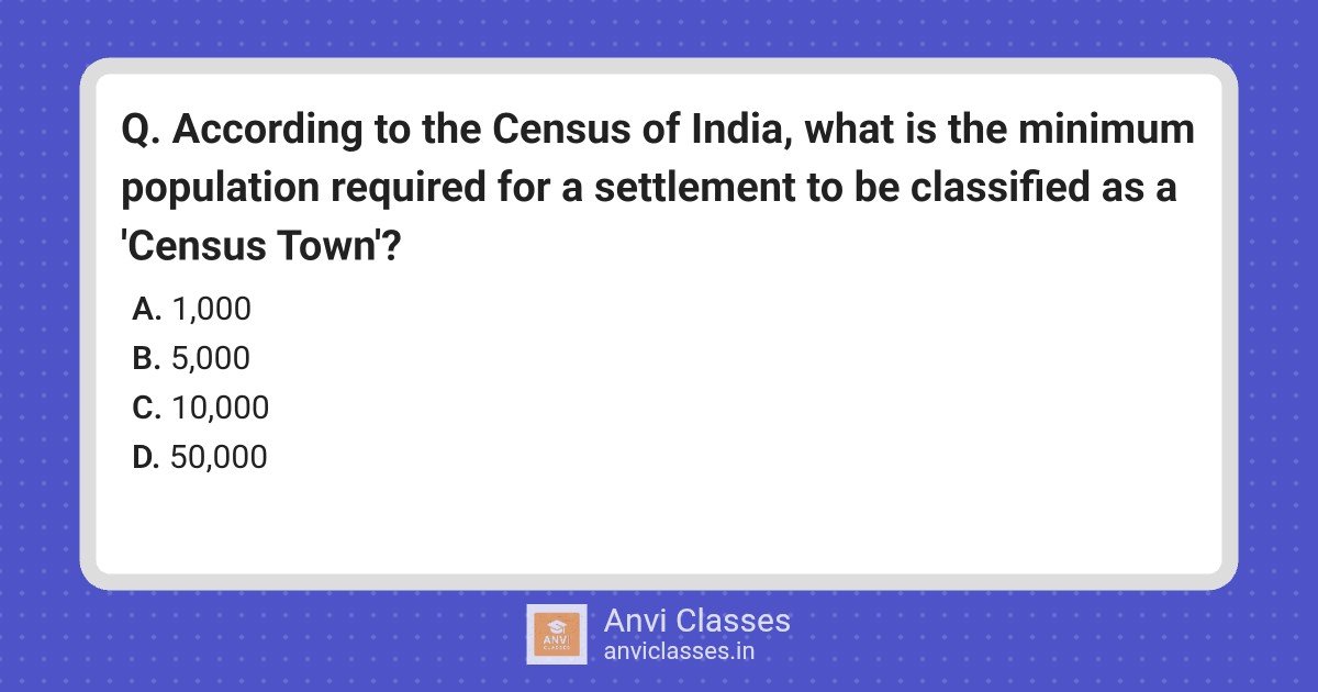 According to the Census of India, what is the minimum population required for a settlement to be classified as a ‘Census Town’?