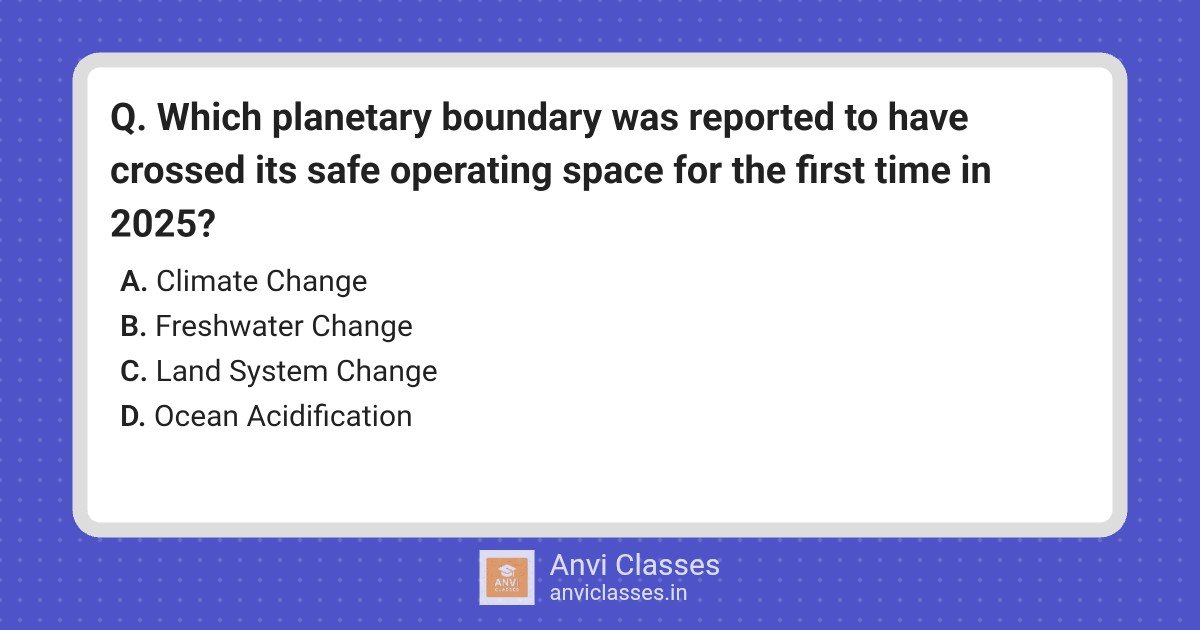 Which planetary boundary was reported to have crossed its safe operating space for the first time in 2025?