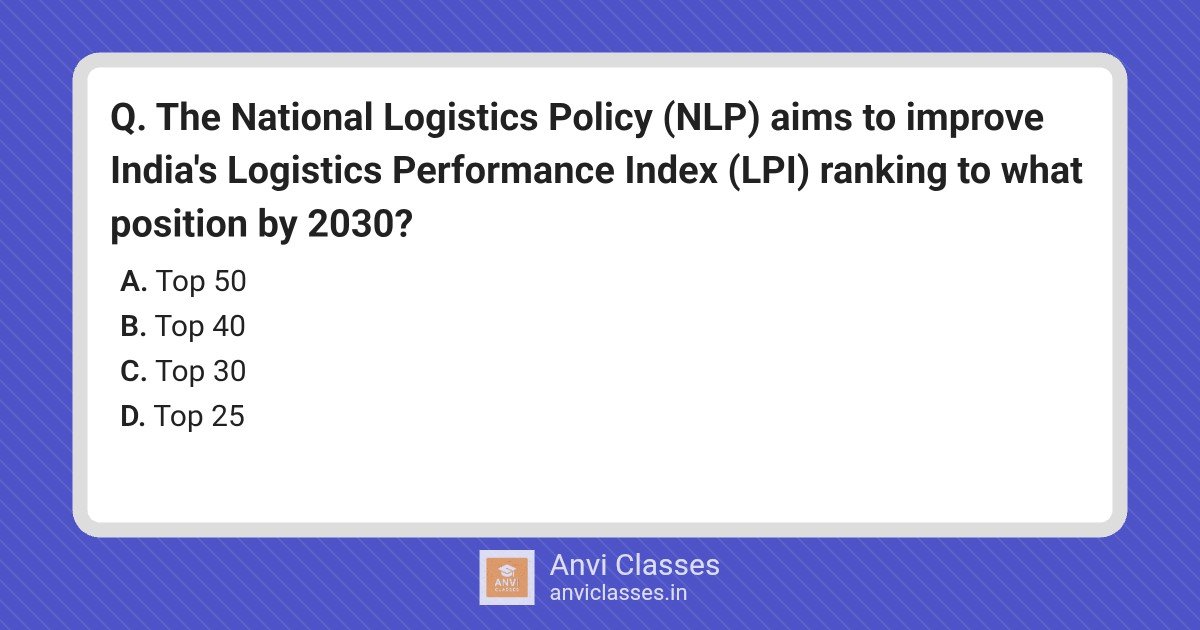The National Logistics Policy (NLP) aims to improve India’s Logistics Performance Index (LPI) ranking to what position by 2030?
