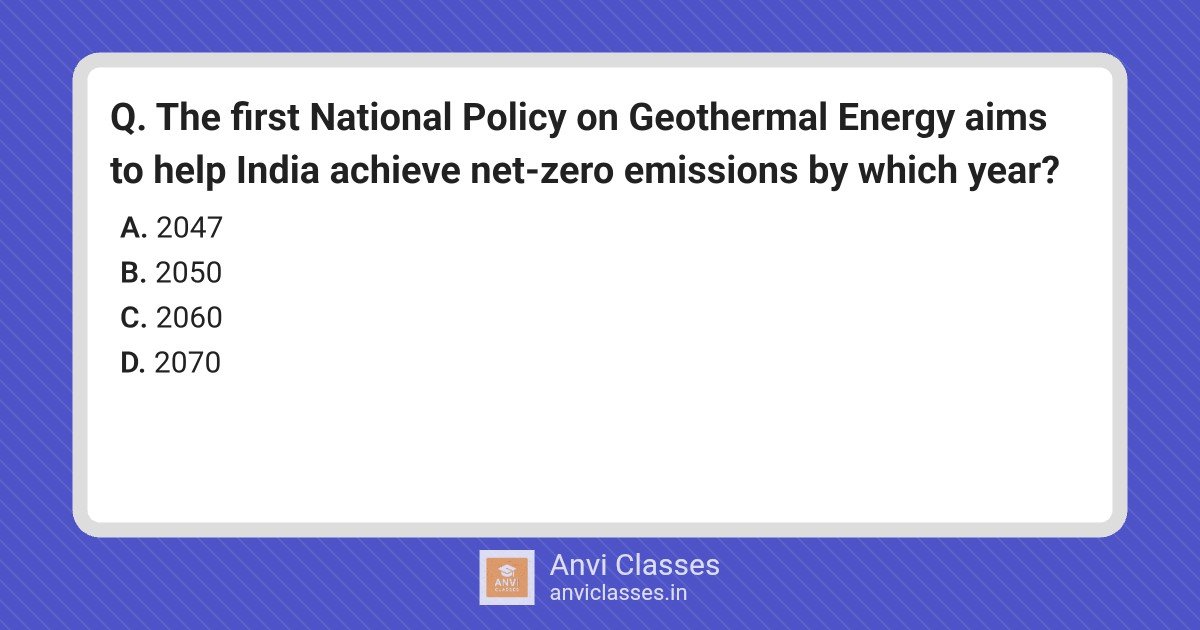 The first National Policy on Geothermal Energy aims to help India achieve net-zero emissions by which year?