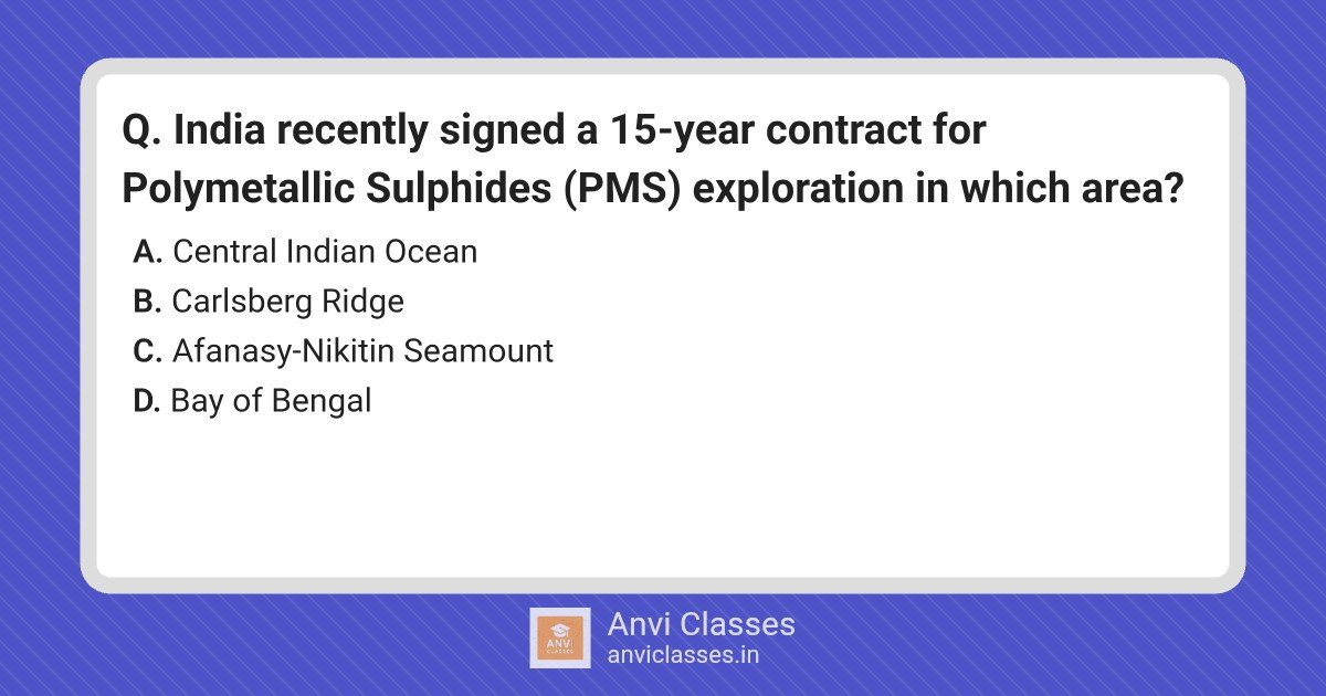 India recently signed a 15-year contract for Polymetallic Sulphides (PMS) exploration in which area?