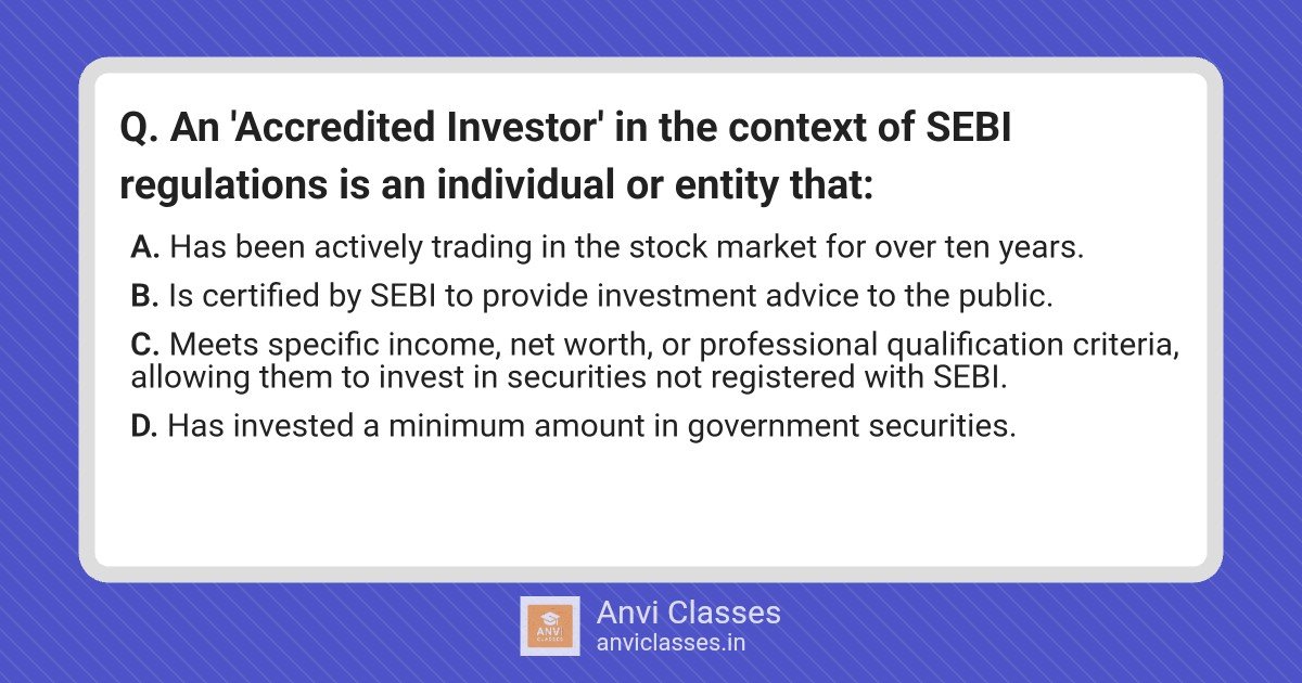 An ‘Accredited Investor’ in the context of SEBI regulations is an individual or entity that: