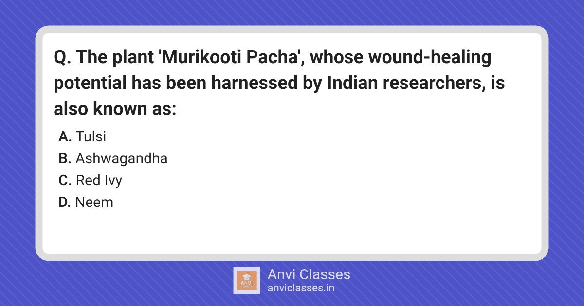 The plant ‘Murikooti Pacha’, whose wound-healing potential has been harnessed by Indian researchers, is also known as: