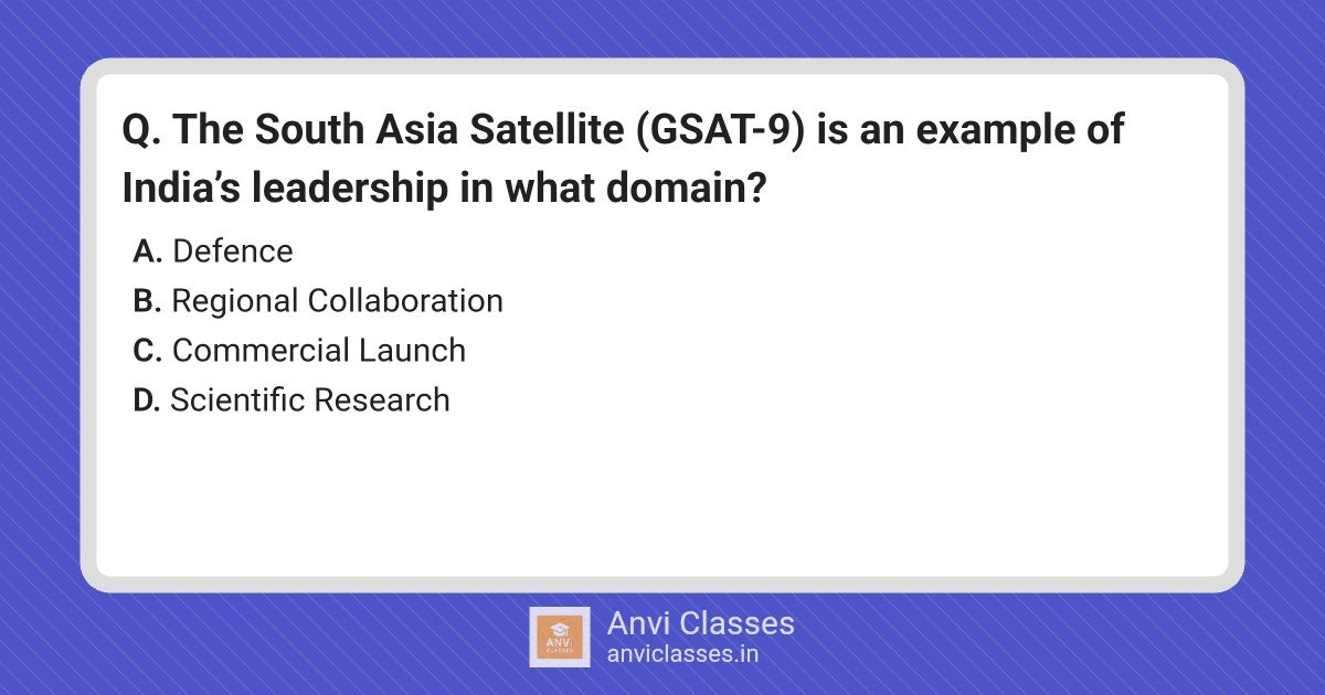 The South Asia Satellite (GSAT-9) is an example of India’s leadership in what domain?