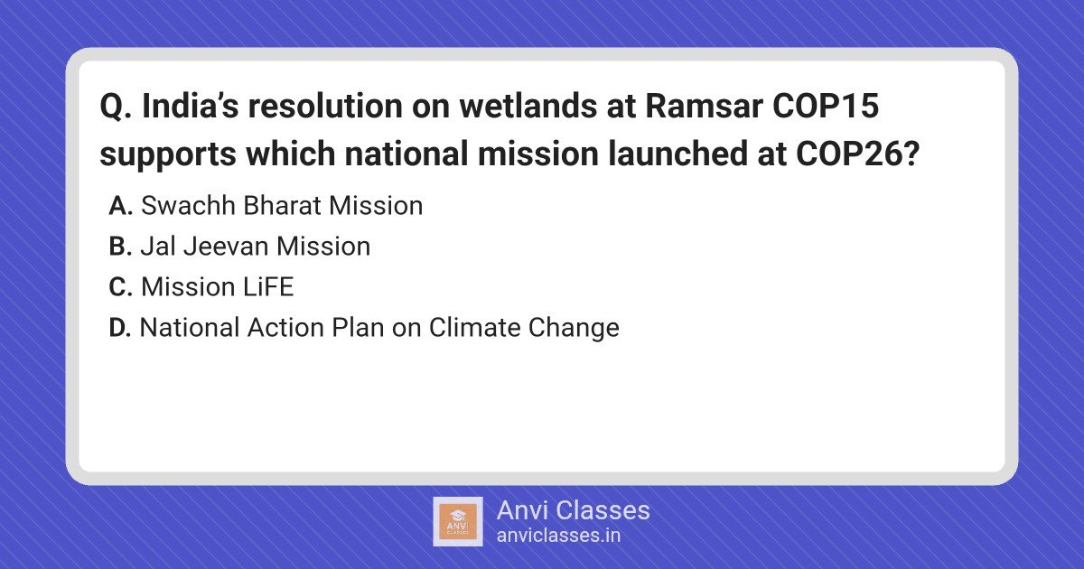 India’s resolution on wetlands at Ramsar COP15 supports which national mission launched at COP26?