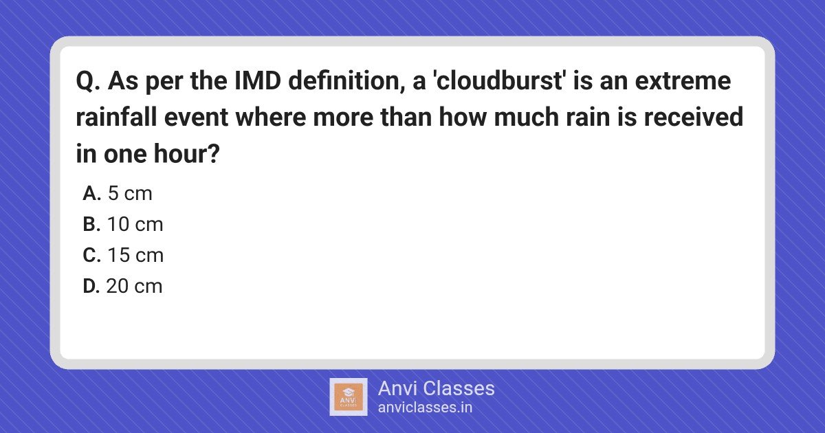 As per the IMD definition, a ‘cloudburst’ is an extreme rainfall event where more than how much rain is received in one hour?