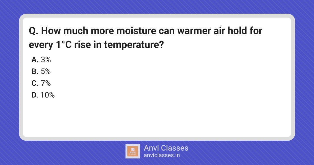 How much more moisture can warmer air hold for every 1°C rise in temperature?