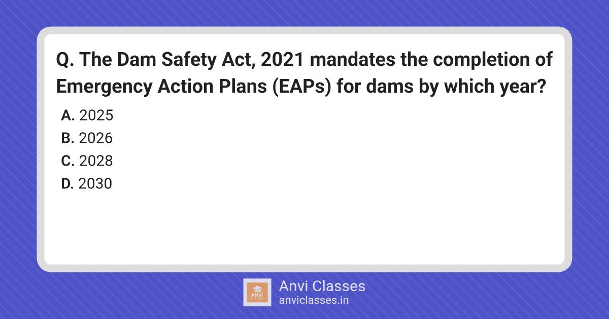 The Dam Safety Act, 2021 mandates the completion of Emergency Action Plans (EAPs) for dams by which year?