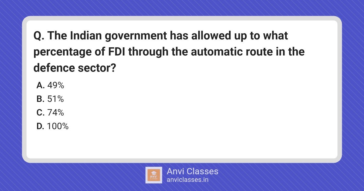 The Indian government has allowed up to what percentage of FDI through the automatic route in the defence sector?
