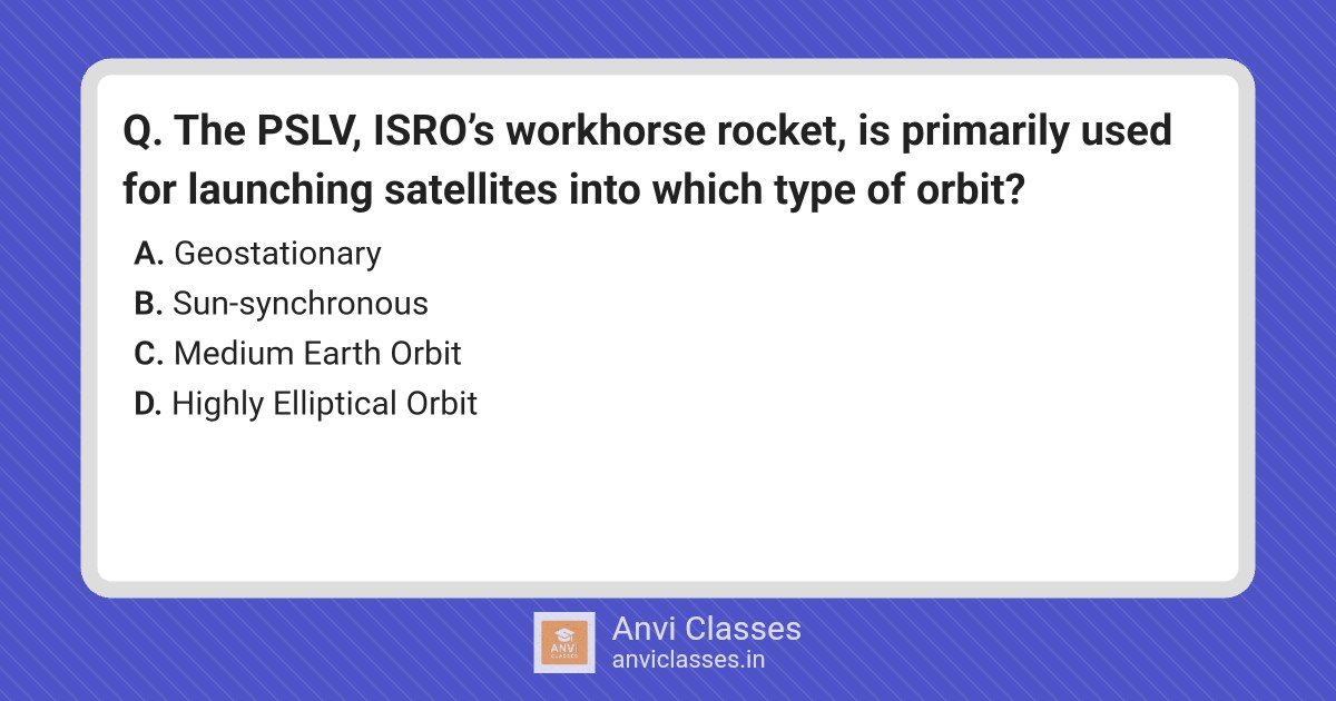 The PSLV, ISRO’s workhorse rocket, is primarily used for launching satellites into which type of orbit?