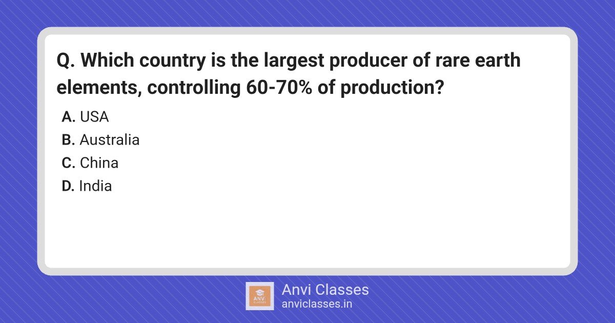 Which country is the largest producer of rare earth elements, controlling 60-70% of production?