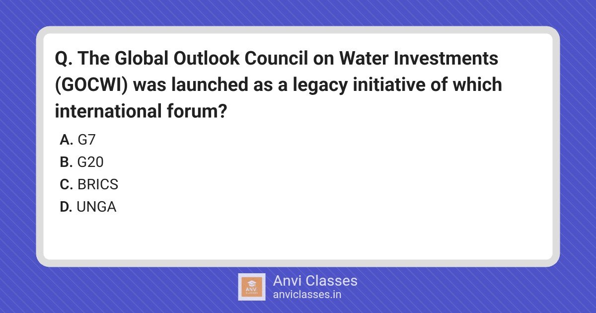 The Global Outlook Council on Water Investments (GOCWI) was launched as a legacy initiative of which international forum?