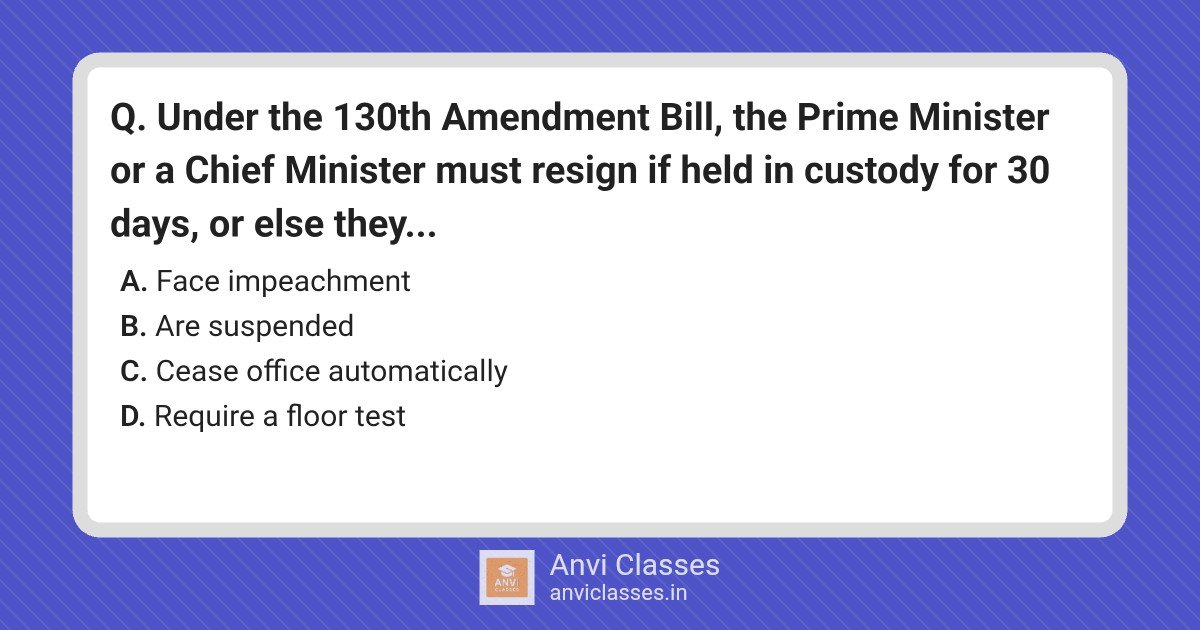 Under the 130th Amendment Bill, the Prime Minister or a Chief Minister must resign if held in custody for 30 days, or else they…